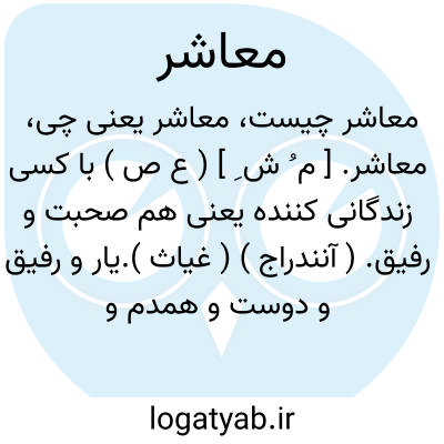 ۱ - ( اسم ) باکسی زندگی کننده. ۲- ( صفت ) یار رفیق دوست: دوام عیش و تنعم نه شیو. عشق است اگر معاشر مایی بنوش نیش غمی. ( حافظ ) جمع: معاشرین.