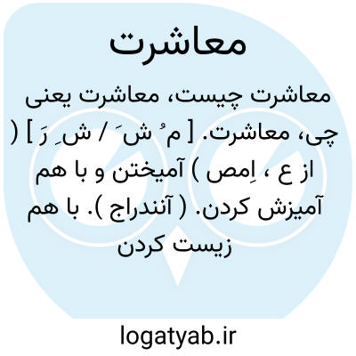 معاشرت. [ م ُ ش َ / ش ِ رَ ] ( از ع، اِمص ) آمیختن و با هم آمیزش کردن. ( آنندراج ). با هم زیست کردن و با کسی زندگانی نمودن. ( غیاث ). اختلاط و آمیزش با هم و گفت و شنید با هم و الفت و مصاحبت و همدمی و رفاقت و زندگانی با هم و خوردن و آشامیدن با هم. ( ناظم الاطباء ). نشست و برخاست. ( یادداشت به خط مرحوم دهخدا ): آنجا که جهانی از تمتع آب و نان و معاشرت جفت و فرزند محروم شده باشند... ( کلیله و دمنه ). و شاعر باید که در مجلس محاورت خوشگوی بود و در مجلس معاشرت خوشروی. ( چهارمقاله ). در بعضی ایام در اثنای معاشرت که سورت شراب عنان تماسک او بستده بود مباسطتی بیش از قدر خویش آغاز کرد. ( ترجمه تاریخ یمینی چ 1 تهران ص 318 ). هر روز با حریفی و هر شب با ظریفی به معاشرت و مباشرت مشغولی. ( ترجمه تاریخ یمینی چ 1 تهران ص 345 ). به خدمت سلطان رسید و به معاشرت و منادمَت او مخصوص شد. ( ترجمه تاریخ یمینی چ 1 تهران ص 435 ). او را پیش تخت خواند و در مجلس معاشرت نشاند. ( ترجمه تاریخ یمینی چ 1 تهران ص 436 ). فصلی در همان روز اتفاق بیاض افتاد در حسن معاشرت و آداب محاورت در لباسی که متکلمان را بکار آید... ( گلستان ). و رجوع به معاشرة شود.