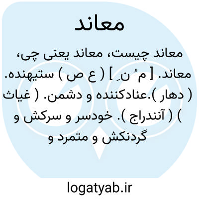 معاند. [ م ُ ن ِ ] ( ع ص ) ستیهنده. ( دهار ).عنادکننده و دشمن. ( غیاث ) ( آنندراج ). خودسر و سرکش و گردنکش و متمرد و نافرمان و دشمن و ژکاره. ( ناظم الاطباء ). معارض به خلاف نه به وفاق. ستیزه کننده. آن که عناد کند. ( یادداشت به خط مرحوم دهخدا ): برانداختن بی دینان و بر خاک مالیدن بینی معاندان. ( تاریخ بیهقی چ ادیب ص 315 ). بعضی بر خانه موالی خویش خروج کردند و به معاندان آن دولت التجا ساختند. ( ترجمه تاریخ یمینی چ 1 تهران ص 10 ). چون عرصه خراسان از معاندان پاک گردانید و دشمنان آن سامان را نیست کرد ایلک خان ماوراءالنهر با تصرف گرفت. ( ترجمه تاریخ یمینی ایضاً ص 275 ). و استرضاء جوانب از موءالف و مجانب... و موالی و معاند... و منافق و مناصح... به اتمام رسانید. ( مرزبان نامه ). معاندان به حسد در حق وی خوضی کرده اند. ( گلستان ). ولیکن معاندان در کمین اند و مدعیان گوشه نشین. ( گلستان ). چون به حکایت ملک او رسیم ذکر رود که ملک و سریر و دیهیم پدر با چندان معاندو معارض از اقربا و برادران چگونه به دست آورد. ( تاریخ ابن اسفندیار ). || از هم جدا گردیده وکرانه گزیده. || برخلاف مکافات کرده. ( ناظم الاطباء ) ( از منتهی الارب ). و رجوع به معاندة شود.