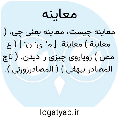 ( معاینة ) معاینة. [ م ُ ی َ ن َ ] ( ع مص ) رویاروی چیزی را دیدن. ( تاج المصادر بیهقی ) ( المصادرزوزنی ). دیدن به چشم. ( منتهی الارب ) ( آنندراج ). به چشم دیدن. عِیان. ( ناظم الاطباء ) ( از اقرب الموارد ). و رجوع به معاینه شود.