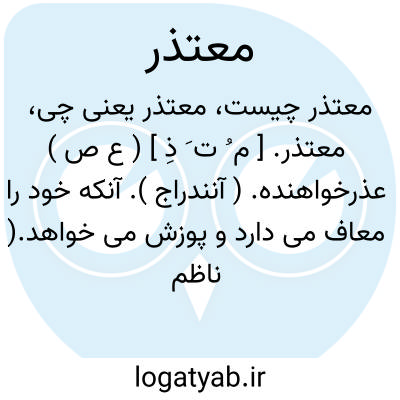 معتذر. [ م ُ ت َ ذِ ] ( ع ص ) عذرخواهنده. ( آنندراج ). آنکه خود را معاف می دارد و پوزش می خواهد.( ناظم الاطباء ) ( از اقرب الموارد ). پوزش خواه صاحب عذر. ( یادداشت به خط مرحوم دهخدا ). و رجوع به اعتذار شود. || شکایت کننده. ( ناظم الاطباء ) ( از منتهی الارب ) ( از اقرب الموارد ). و رجوع به اعتذار شود.