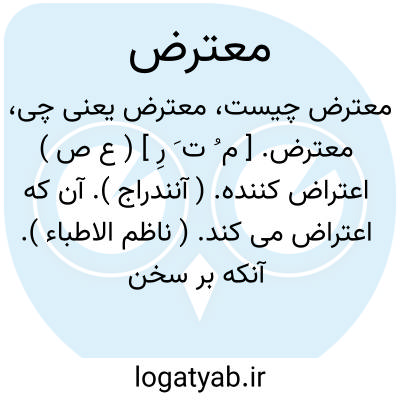 معترض. [ م ُ ت َ رِ ] ( ع ص ) اعتراض کننده. ( آنندراج ). آن که اعتراض می کند. ( ناظم الاطباء ). آنکه بر سخن یا عقیده و عمل دیگری خرده گیرد. خرده گیر. ( یادداشت به خط مرحوم دهخدا ). || پیش آینده. ( آنندراج ) ( از منتهی الارب ) ( از اقرب الموارد ). و رجوع به اعتراض شود. || ( اصطلاح حقوق ) واخواه را گویند. ( ترمینولوژی حقوق تألیف جعفری لنگرودی ). و رجوع به واخواه شود.