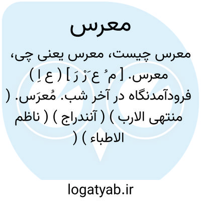 معرس. [ م ُ ع َرْ رِ ] ( ع ص ) فروشنده عَرس که شتربچه باشد. ( منتهی الارب ) ( آنندراج ) ( ازناظم الاطباء ) ( از اقرب الموارد ). || مسافر و آنکه در آخر شب فرود آید. ( ناظم الاطباء ) ( از منتهی الارب ) ( از اقرب الموارد ). و رجوع به تعریس شود.
