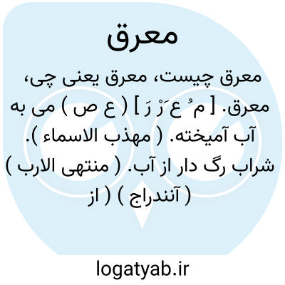 معرق. [ م ُ ع َرْ رَ ] ( ع ص ) می به آب آمیخته. ( مهذب الاسماء ). شراب رگ دار از آب. ( منتهی الارب ) ( آنندراج ) ( از اقرب الموارد ). شراب آمیخته با اندکی آب. ( ناظم الاطباء ). و رجوع به مُعرَق شود. || مرد کم گوشت. ( منتهی الارب ) ( آنندراج ) ( از ناظم الاطباء )( از اقرب الموارد ). || رجل معرق الخدین؛ مرد کم گوشت رخسار. ( منتهی الارب ) ( آنندراج ) ( ناظم الاطباء ). || هر چیز رگ دار. ( ناظم الاطباء ).