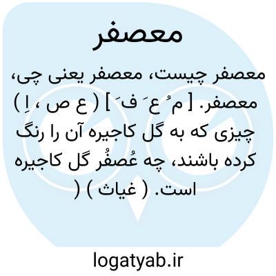 معصفر. [ م ُ ع َ ف َ ] ( ع ص، اِ ) چیزی که به گل کاجیره آن را رنگ کرده باشند، چه عُصفُر گل کاجیره است. ( غیاث ) ( آنندراج ). رنگ کرده به عصفر. به کاژیره ( گل کافشه ) رنگ کرده. ( یادداشت به خط مرحوم دهخدا ). به عصفر زرد یا سرخ شده.