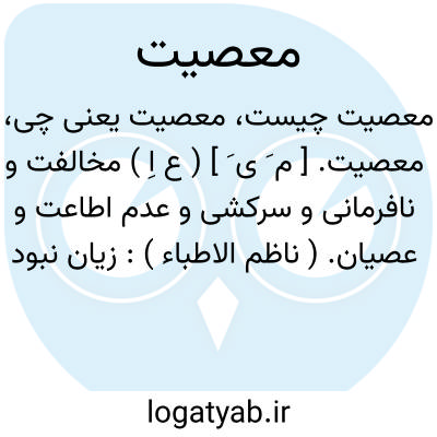 ۱ - نافرمانی کردن. ۲ - گناه کردن. ۳- ( اسم ) نافرمانی. ۴ - ( اسم ) گناه: آن معصیت و ی در کارما کن و بفضل خود او را بیامرز. جمع: معاصی.