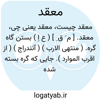 معقد مطلعی از شعر خاقانی است پنداری.محسن تأثیر ( از آنندراج ). || عبارت از بیتی است که شاعر آن را بر شکل گرهی گوید و آن داخل در موشح باشد. ( از کشاف اصطلاحات الفنون ). || غلیظشده. غلیظ. ستبر. بسته. ( یادداشت به خط مرحوم دهخدا ): پس فضل بر عادت آن شب از همه چیزها بخورد و زیربای معقد ساخته بودند همه به کار داشت. ( چهارمقاله ). و رجوع به مُعقَد و تعقید شود. || پیچیده. ( یادداشت به خط مرحوم دهخدا ). تابیده. تافته. پرتاب. پرپیچ: