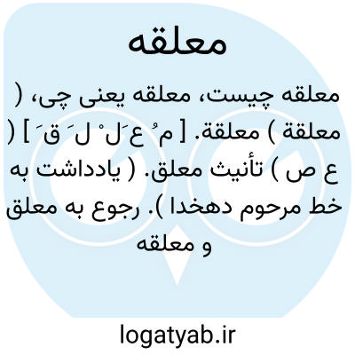 (مُ عَ لَّ ق ) [ ع. معلقة ] (اِمف. ) ۱ - آویخته. ۲ - مربوط. ۳ - هر یک از هفت قصیدة مهمی که در عهد جاهلیت به خانة کعبه آویخته بودند. ۴ - زنی که شوهرش گم شده. ج. معلقات.