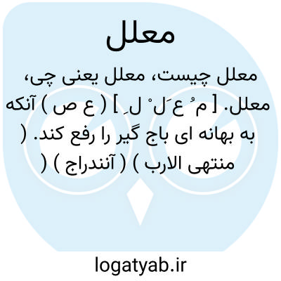 معلل. [ م ُ ع َل ْ ل ِ ] ( ع ص ) آنکه به بهانه ای باج گیر را رفع کند. ( منتهی الارب ) ( آنندراج ) ( ناظم الاطباء ) ( از اقرب الموارد ). || هرکه مرةً بعد اخری آب نوشد. ( منتهی الارب ) ( آنندراج ). آنکه بار بار آب خورد. ( ناظم الاطباء ) ( از اقرب الموارد ). || هرکه بار بار میوه چیند. ( منتهی الارب ) ( آنندراج ) ( ناظم الاطباء ). آنکه میوه چیند یکی بعد از دیگری. ( از اقرب الموارد ). || روزی است از ایام عجوز. ( منتهی الارب ) ( آنندراج ) ( از اقرب الموارد ). روز ششم از ایام عجوز. ( ناظم الاطباء ). نام روز ششم است از هفت روز بردالعجوز. ( آثار الباقیه، یادداشت به خط مرحوم دهخدا ). || اثبات کننده حکمی به وسیله دلیل. ( از تعریفات جرجانی ). بیان کننده علت. تعلیل کننده. دلیل آورنده.