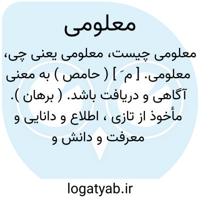 معلومی. [ م َ ] ( ص نسبی ) نسبت است به فرقه معلومیه که ضد مجهولیه اند. ( از انساب سمعانی ). و رجوع به معلومیة شود.