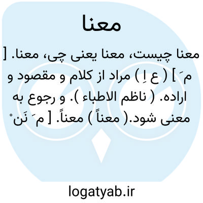 معنا. [ م َ ] ( ع اِ ) مراد از کلام و مقصود و اراده. ( ناظم الاطباء ). و رجوع به معنی شود.