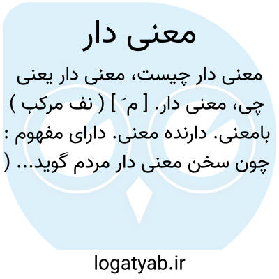 ( صفت ) ۱ - دارای معنی دارنده مفهوم [ چون سخن معنی دار مردم گوید... ] ( جامع الحکمتین. ۲ ) ۱۲٠ - حاکی از مفهومی خاص ( استهزائ و توهین فهم مطلب و غیره ): [ لبخند معنی دار ] [ با حرکت معنی داری سر بزیر افکند... ]