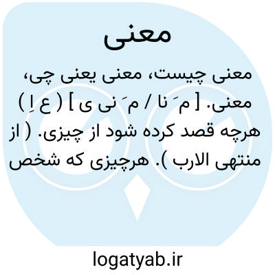 معنی. [ م َ نا / م َ نی ی ] ( ع اِ ) هرچه قصد کرده شود از چیزی. ( از منتهی الارب ). هرچیزی که شخص قصد می کند و مقصود. ج، معانی. ( ناظم الاطباء ). قصدکرده شده. ( غیاث ) ( آنندراج ). || مقصود از سخن. ( مهذب الاسماء ). مراد کلام. ( منتهی الارب ). آنچه لفظ بر آن دلالت دارد. ( از اقرب الموارد ). آرش و مضمون و مفهوم و مراد و مقصود و منظور و دلالت وغرض و نیت. ( ناظم الاطباء ). مضمون. ج، معانی و با لفظ تراویدن و بستن مستعمل و پاک، باریک، نازک، موزون،سنجیده، رنگین، غریب، دلچسب، دلفروز، تازه، پوشیده،درپیش پاافتاده، خودرو، برجسته، پرورده، بکر، پیچیده، پخته، خفته، کوتاه و مرده از صفات اوست. ( آنندراج ). آنچه از کلمه یا کلماتی مفهوم شود. مقصود از کلمه یا کلام. چم. مفهوم. فحوی. فحواء. مدلول. مقصود. مراد. منظور. منطوق. مفاد. مقتضی. تفسیر. تأویل. آرش. مقابل لفظ. ( یادداشت به خط مرحوم دهخدا ):