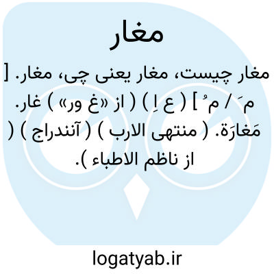 مغار. [ م َ / م ُ ] ( ع اِ ) ( از «غ ور» ) غار. مَغارَة. ( منتهی الارب ) ( آنندراج ) ( از ناظم الاطباء ). کهف. سوراخ در کوه. ( یادداشت به خط مرحوم دهخدا ). || غالباً جایی را گویند که آهوان در آن جای گیرند. ( از منتهی الارب ) ( از اقرب الموارد ). خواب جای آهو. ( ناظم الاطباء ).