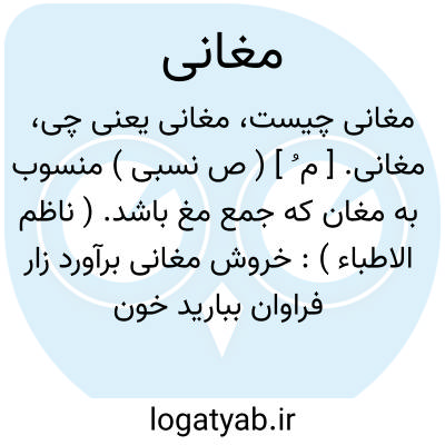 مغانی. [ م ُ ] ( ص نسبی ) منسوب به مغان که جمع مغ باشد. ( ناظم الاطباء ):