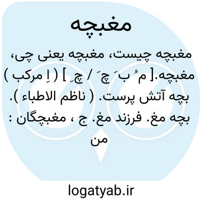( اسم ) ۱ - فرزند مغ: [ آمد افسوس کنان مغبچه باده فروش گفت: بیدار شو ای رهرو خواب آلوده. ] ( حافظ. ۲ ) ۲۹۳ - پسرکی که در میکدهها خدمت کند جمع: مغبچگان شعاع جام قدح نور ماه پوشیده عذار مغبچگان راه آفتاب زده. ] ( حافظ. ۲۹۱ )