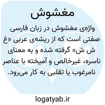 واژه‌ی مغشوش در زبان فارسی صفتی است که از ریشه‌ی عربی «غ ش ش» گرفته شده و به معنای ناسره، غیرخالص و آمیخته با عناصر نامرغوب یا تقلبی به کار می‌رود. این صفت معمولاً برای اشاره به موادی به کار می‌رود که کیفیت اصلی خود را از دست داده‌اند و با افزودن اجزای ارزان‌تر یا نامرغوب، ارزش ذاتی آن‌ها کاهش یافته است. برای نمونه، اصطلاح لبن مغشوش در متون کهن به شیری اشاره دارد که با آب مخلوط شده و خلوص اولیه‌ی خود را از دست داده است.