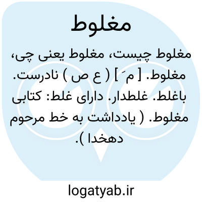 مغلوط. [ م َ ] ( ع ص ) نادرست. باغلط. غلطدار. دارای غلط: کتابی مغلوط. ( یادداشت به خط مرحوم دهخدا ).