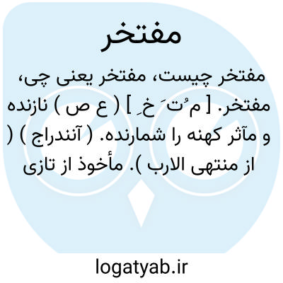 ( اسم ) فخر کننده نازنده: [ ملوک آفاق بمخالت دولت او مفتخر و سلاطین جهان بمراسلت حضرت او مبتهج. ] ( المعجم. چا. دانشگاه. ۱۹ ) توضیح در تداول امروزی غالبا بفتح خائ استعمال شود.