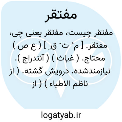 ۱ - ( اسم ) نیاز دارنده. ۲ - ( صفت ) نیازمند محتاج مستمند: [ این همه دلایل به تایید الهی و هدایت پادشاهی مفتقرند. ] ( چهارمقاله. ۱٠۷ ) جمع: مفتقرین.