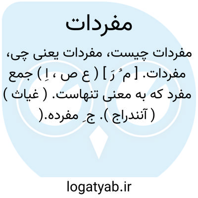 مفردات. [ م ُ رَ ] ( ع ص، اِ ) جمع مفرد که به معنی تنهاست. ( غیاث ) ( آنندراج ). ج ِ مفرده.( یادداشت به خط مرحوم دهخدا ). و رجوع به مفرد و مفرده شود. || چیزهایی تنها و یگانه و ساده وبی آمیغ. ( ناظم الاطباء ): ما مفردات را نخست در وهم آوریم پس ترکیبش کنیم. ( مصنفات باباافضل ج 2ص 436 ). || دواها که در آن ترکیب صناعی نباشد. مفردات یا نباتی است و آن میوه ها و تخمها و گلها و برگها و شاخه ها و ریشه ها و پوستها و عصاره ها و شیره های نباتی و صمغها باشد و یا حیوانی است، مانند ذراریح و اعضای حیوانات و احشای آنها و زهره شان و یا معدنی است و آن خود یا حجری است، مانند گل ارمنی و یا از چیزهایی است که از زمین جوشد، مانند قیر و نفت و امثال آن. بسائط. عقاقیر. ادویه مفرده. ( از یادداشت به خط مرحوم دهخدا ): از مفردات اجزاء آن مرکبی به فرط امتزاج... حاصل آمد. ( مرزبان نامه ).