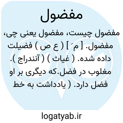 ( اسم ) کسی یا چیزی که دیگری بر او فضیلت دارد: [ چه در حکمت نیکو نبود فاضل را فرمودن یا مفضول را بغایت و نهایت تعظیم سجده کند... ] ( تفسیرابوالفتوح چا. ۱ج ۱ص ۸۷ )