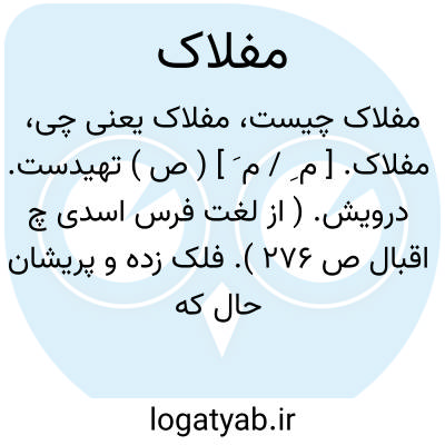 ( صفت ) تهیدست بی چیز مفلوک: [ از فلک نحسهابسی بینند آن که باشد غنی شود مفلاک. ) ( ابوشکور. لفااق.۲۷۶ ) توضیح بقول رشیدی این کلمه بر ساخته فارسیان است مانند فلاکت ولی کلمه مذکور را مرحوم قزوینی اصیل دانسته اما باید دانست که مفلاک در کتب معتبر عربی نیامده و بجای آن بدین معنی [ مفلاق ] استعمال شده. بنابراین یا در عربی عامیانه مفلاق تبدیل به مفلاک شده و یاایرانیان در آن تصرف کرده اند ( قول اخیر اصح مینماید زیرا در لغت فرس اسدی هم جزو لغات فارسی یاد شده و رشیدی هم همین را تایید میکند ) و از همین کلمه بعدا مفلوک و فلاکت ساخته شده.