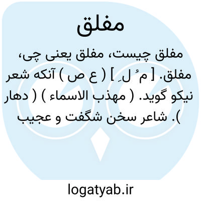 مفلق. [ م ُ ل ِ ] ( ع ص ) آنکه شعر نیکو گوید. ( مهذب الاسماء ) ( دهار ). شاعر سخن شگفت و عجیب آورنده. ( منتهی الارب ). شاعری که سخن شگفت و عجیب آورد. ( آنندراج ) ( ناظم الاطباء ) ( از اقرب الموارد ). سخت فصیح در شاعری. ( یادداشت به خط مرحوم دهخدا ): بسا مهتران که نعمت پادشاهان خوردند و بخششهای گران کردند و بر این شعرای مفلق سپردند. ( چهار مقاله ).