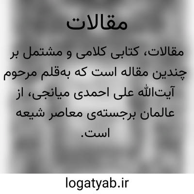 [ویکی نور] مقالات (احمدی میانجی). مقالات، اثرى است کلامى مشتمل بر چند مقاله که درباره اثبات ولایت و خلافت امیرالمؤمنین على(ع) و اولاد طاهرین آن حضرت علیهم السلام توسط مرحوم آیت الله على احمدى میانجى، از عالمان معاصر شیعى نگارش یافته است.