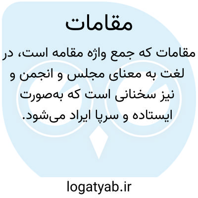 ( اسم ) ۱ - جمع مقامه: الف - مجالس ب - مقامه [ عرض مخدوم در مقامات ترسل محفوظ دارد ( چهار مقاله. ۲٠ ) ج - کارهای مهم هنر نماییها: [ کشتن شنز به و یاد کردن مقامات مشهور و ماثر مشکور که در خدمت من داشت... ] ( کلیله. مصحح مینوی. ۲ ) ۱۲۹ - جمع مقام.: [ در هر مقامی از مقامات یکی نازل همه یکی اند دو گانگی باطل ] ( کشف الاسرار. ۵۴:۱ ) یا مقامات دولتی. مشاغل دولتی. یامقامات عالی ( عالیه ). مشاغل عالی مانند وزارت سفارت و جز آن ۳ - عدد ها ست نهاده هر کوکبی را بهر جای از فلک اوجش که چون خاصه معدله او با مقام راست شود آن وقت کوکب مقیم باشد ایستاده و او را اندر فلک البرج هیچ حرکت پیدا نیاید. اگر مقام او از شش برج کمتر بود او را مقام اول خوانند وز پس آن ایستادن کوکب راجع گردد. و اگر مقام از شش برج افزون بود او را مقام ثانی خوانند و از پس آن ایستادن کوکب مستقیم شود. و هر گاه که یکی از این دو مقام دانی و دیگر خواهی او را از دوازده برج کم کن آنچ بماند دیگر مقام بود ( التفهیم. ۱۳۹ )