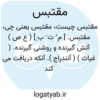 ( اسم ) ۱ - آتش گیرنده ۲ - روشنی گیرنده ۳ - اقتباس کننده اخذ کننده: [ و مواعظ بسیار لایق هر حکایت درو زیادت گردانید تا مستفیدان ادب و مقتبسان الفاظ عرب را بمطالعه آن رغبت زیادت گردد. ] ( روضه العقول. مقدمه مرزبان نامه تهران ۱۳۱۷ ص ز ) جمع: مقتبسین.