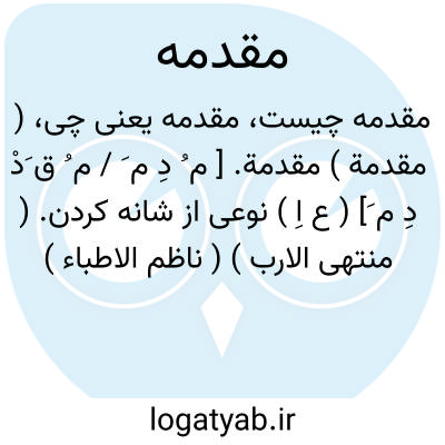 مقدمه. [ م ُ ق َدْ دِ / دَ م َ / م ِ ] ( از ع، اِ ) اول از هر چیزی و جزء پیشین و نخستین از هر چیزی. ( ناظم الاطباء ).