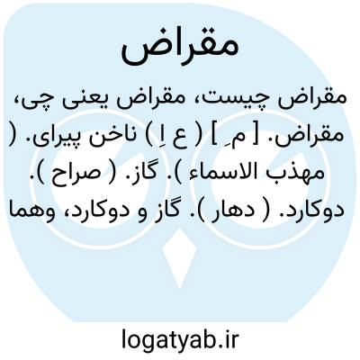 مقراض. [ م ِ ] ( ع اِ ) ناخن پیرای. ( مهذب الاسماء ). گاز. ( صراح ). دوکارد. ( دهار ). گاز و دوکارد، وهما مقراضان. ج، مقاریض. ( منتهی الارب ) ( از ناظم الاطباء ). افزار معروف که بدان جامه و کاغذ و امثال آن می برند و آن را در عرف هند کترنی گویند. ( آنندراج ). آنچه بدان پارچه و جز آن برند و هما مقراضان و در معنی مجازی گویند لسان زید مقراض الاعراض. ( از اقرب الموارد ). ابزاری آهنین و مرکب از دو تیغه برنده که بواسطه میخ یا پیچی آن دو تیغه روی هم قرار می گیرند و هر چیز جامدی را به اعانت آن می برند و کازود و برنس و برنیش گویند. ( ناظم الاطباء ). قیچی. دو کارد. قِطاع. مِقَص. ( یادداشت به خط مرحوم دهخدا ):