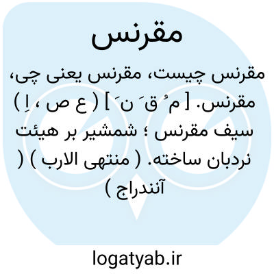 ( اسم ) ۱ - آنچه بشکل نردبان و پله پله ساخته شده. ۲ - بنای بلند مدور و ایوان آراسته و مزین با صورتها و نقوش که بر آن با نردبان پایه روند. ۳ - قسمی زینت که در اطاقها و ایوانها بشکلهای گوناگون گچ بری کنند کنگره دار قرنیز دار. یا سقف ( طاق ) مقرنس. آسمان: [ فتنه می بارد از ین سقف مقرنس برخیز. تابمیخانه پناه از همه آفات بریم. ] ( حافظ. ۴ ) ۲۵۸ - هر چیز رنگارنگ. ۵ - ( اسم ) قسمی عمامه و کلاه.