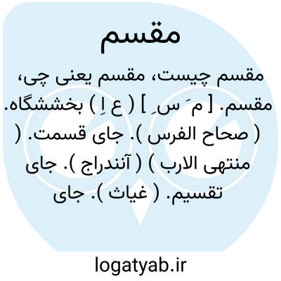 مقسم. [ م َ س َ ] ( ع اِ ) بهره و نصیب از چیزی. ( منتهی الارب ) ( آنندراج ) ( ناظم الاطباء ). || هرچه که به اقسامی تقسیم شود مقسم نامیده می شود و هرقسم را نسبت به قسم دیگر قسیم می نامند. نسبت بین دو قسیم همیشه تباین است و نسبت بین مقسم و قسم، عام و خاص مطلق است. ( ترمینولوژی حقوق تألیف جعفری لنگرودی ). || جای قسمت کردن و بخشش نمودن. ( ناظم الاطباء ). موضع قسمت. بخشگاه. ( یادداشت به خط مرحوم دهخدا ). و رجوع به مَقِسم شود.
