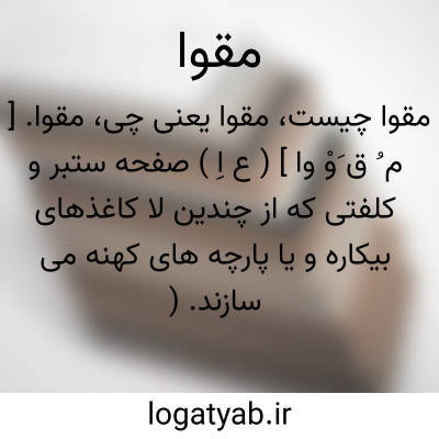 مقوا. [ م ُ ق َوْ وا ] ( ع اِ ) صفحه ستبر و کلفتی که از چندین لا کاغذهای بیکاره و یا پارچه های کهنه می سازند. ( ناظم الاطباء ). کاغذی سخت ضخیم که از خمیر کاغذ یا چند لای کاغذ بر یکدیگر دوسیده کنند. تخته گونه ای که از خمیر کاغذ یا کاغذهای برهم نهاده و چسبانیده سازند. ( یادداشت به خط مرحوم دهخدا ):