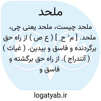 ملحد. [ م ُ ح ِ ] ( ع ص ) از راه حق برگردنده و فاسق و بیدین. ( غیاث ) ( آنندراج ). از راه حق برگشته و فاسق و بیدین و کافر و بت پرست. ( ناظم الاطباء ). طعنه زننده یا ستیهنده و جدل کننده در دین. ج، ملحدون. ملاحدة.( از اقرب الموارد ). آنکه از دین بازگشته یا عدول کرده یا منحرف شده. آنکه در دین درآورده آنچه را که درآن نیست. ( یادداشت به خط مرحوم دهخدا ):