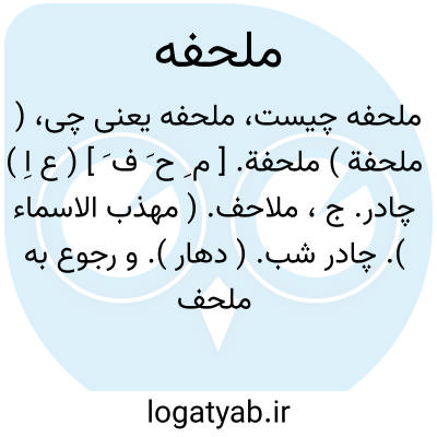 ( اسم ) ۱ - آنچه چیزی را احاطه کند و بپوشاند. ۲ - پارچه ای که هنگام خواب روی خود اندازند و بخود پیچند: [... دیگر ملحفه ای که به ورس رنگ کرده بودند ] ( ناسخ التواریخ جلد اول. از کتاب دوم. چا. قد. ص ۷٠۴ ) جمع: ملاحف.