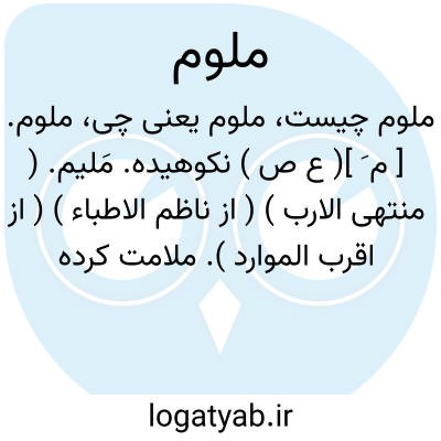 ملوم. [ م َ ]( ع ص ) نکوهیده. مَلیم. ( منتهی الارب ) ( از ناظم الاطباء ) ( از اقرب الموارد ). ملامت کرده شده. ( آنندراج ) ( غیاث ): و لاتجعل یدک مغلولة اًِلی عنقک و لاتبسطها کل البسط فتقعد ملوماً محسوراً. ( قرآن 31/17 ). تا دامن قیامت گویند ابله مردی بود محمد زکریا که به اختیار در کشتی نشست تا غرق شد و از جمله ملومان باشم نه از جمله معذوران. ( چهارمقاله چ معین ص 115 ).