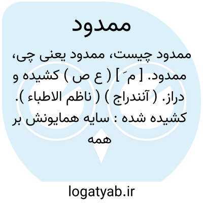 ممدود. [ م َ ] ( ع ص ) کشیده و دراز. ( آنندراج ) ( ناظم الاطباء ). کشیده شده: سایه همایونش بر همه جهانیان ممدود. ( یادداشت مرحوم دهخدا ). بعضی گفتند که ظل ممدود است در بهشت. ( کشف الاسرار ج 2 ص 545 ).