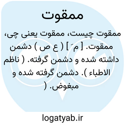 ممقوت. [ م َ ] ( ع ص ) دشمن داشته شده و دشمن گرفته. ( ناظم الاطباء ). دشمن گرفته شده و مبغوض. ( آنندراج ) ( از اقرب الموارد ) ( غیاث اللغات ). آنکه هر کس او را دشمن دارند. آنکه همه او را دشمن دارند. ( مهذب الاسماء ): پس از گذشتن خداوندش چون درجه گونه ای یافت و نواختی از سلطان مسعود، اما ممقوت شد هم نزدیک وی و هم نزدیک بیشتر از مردمان. ( تاریخ بیهقی چ ادیب ص 254 ). این چه طلعت مکروه است و هیأت ممقوت. ( گلستان ).