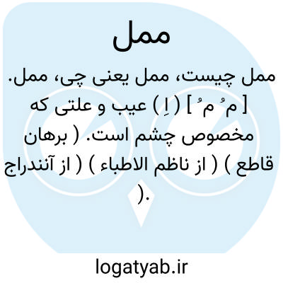 ممل. [ م ُ م ُ ] ( اِ ) عیب و علتی که مخصوص چشم است. ( برهان قاطع ) ( از ناظم الاطباء ) ( از آنندراج ).