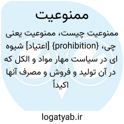 {prohibition} [اعتیاد] شیوه ای در سیاست مهار مواد و الکل که در آن تولید و فروش و مصرف آنها اکیداً ممنوع می شود متـ. سیاست ممنوعیت مطلق zero tolerant policy