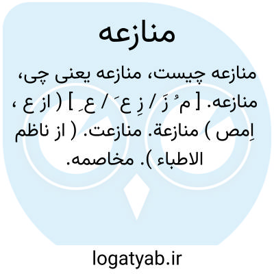 ۱ - ( مصدر ) نزاع کردن ستیزه کردن. ۲ - ( اسم ) نزاع ستیزه: [ و احیانا میان ایشان اختلاف واقع می گشت و از سر تکبر و ترفع منازعه و مخاصمه ظاهری می گشت. ] ( سلجوقنامه ظهیری. چا. خاور. ۲۸ ) جمع: منازعات.