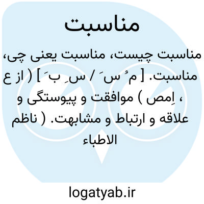 ۱ - ( مصدر ) با هم نسبت و خویشی داشتن. ۲ - مشابه شدن. ۳ - ( اسم ) نسبت خویشی. ۴ - مشابهت همانندی جمع: مناسبات.