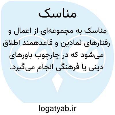 در عبادت یا مراسم مذهبی، اجرای مجموعۀ اعمال معیّنی که یا به مناسبت رویداد مهمی در زندگی شخص، مانند تولد یا مرگ، انجام می گیرد و یا چرخۀ منظم روزانه، هفتگی، یا سالانه ای را تشکیل می دهد. مناسک و مراسم یکشنبۀ کلیساها یا سبت شنبۀ یهودیان یا جمعۀ مسلمانان از این جمله است. معمولاً چنین استنباط می شود که مناسک دارای معانی نمادین عمیق اند. تعریف دیگر آن این است که هر رفتاری را که باید با قواعد معیّنی تطبیق کند و گرنه منجربه عواقب فوق طبیعی تصور می شود، مَنْسک (جمع: مناسک) یا شعیره (جمع: شعایر) می نامند. آن ها نسبت نزدیکی با جهان بینی و دین و مرام جامعه و همچنین ساختارهای سیاسی و اقتصادی آن دارند؛ که به قصد نزدیکی به خدا در ادیان ابراهیمی انجام می گیرد و ممکن است به نیت افزایش محصول، شکست دشمنان، پیشی گرفتن بر رقیبان، رسیدن به اشراق، کاهش فلاکت، درمان بیماری روانی یا جسمی، مشروع ساختن وقایع مهمی از قبیل ازدواج، جبران عواقب تخطی از محرمات و مقررات اجتماعی، یا دفع ارواح خبیث برگزار شوند. در بعضی جوامع همۀ اشخاص حق اجرای مناسک را دارند (مانند دسته ای از بومیان استرالیا)، در برخی دیگر فقط مردان (همچون در میان سرخ پوستان یانومامو برزیل) یا فقط زنان (مثلاً در قبیلۀ کالاباری شمال نیجریه) اجازۀ این کار را دارند، و در گروهی دیگر فقط روحانیان یا شمن ها می توانند مناسک را برگزار کنند. مناسک ممکن است با استعمال مواد مخدر (چنان که در میان غالب سرخ پوستان جنگل های استوایی برزیل و سرخ پوستان جلگه های امریکایی شمالی مرسوم است)، وردخوانی، نقاب گذاری، و رقص و موسیقی و نواختن طبل همراه باشد.