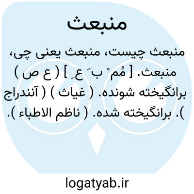 منبعث. [ مُم ْ ب َ ع ِ ] ( ع ص ) برانگیخته شونده. ( غیاث ) ( آنندراج ). برانگیخته شده. ( ناظم الاطباء ). برانگیخته: وقار آن بود که نفس در وقتی که منبعث باشد به سوی مطالب آرام نماید. ( اخلاق ناصری ). یکی آنکه منبعث باشد به سوی جذب نفعی، دیگری آنکه منبعث باشد به سوی دفع ضرری. ( اخلاق ناصری ). باید که به جملگی قوای خود منبعث شود بر آنکه حیات الهی بیابد. ( اخلاق ناصری ). چه، شایدکه بعد از آن دواعی عزیمت در او منبعث شوند. ( مصباح الهدایه چ همایی ص 229 ). || ناشی شونده. نشأت یابنده: پس هر نوع را که از جنس منبعث وبر آن متفرع باشد اسم جنس نهادن و در دایره علی حده آوردن وجهی ندارد. ( المعجم چ مدرس رضوی چ 1 ص 66 ).