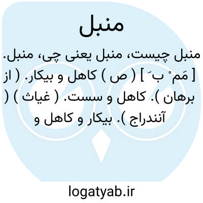 منبل. [ مَم ْ ب َ ] ( ص ) کاهل و بیکار. ( از برهان ). کاهل و سست. ( غیاث ) ( آنندراج ). بیکار و کاهل و تنبل. ( ناظم الاطباء ). کاهل و بیکاره. ( انجمن آرا ). سست و ضعیف. ( یادداشت به خط مرحوم دهخدا ). مؤلف سراج اللغات گوید: «چنان به خاطر می رسد که به معنی کاهل همان تنبل است به تای فوقانی به جای میم، چنانکه بگذشت و منبل به میم تصحیف بود». و ممکن است مهمل «تنبل » باشد. ( حاشیه برهان چ معین ):