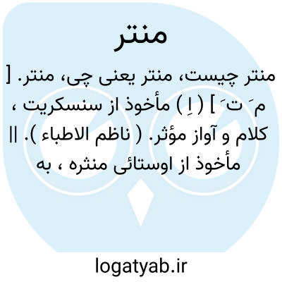 منتر. [ م َ ت َ ] ( اِ ) مأخوذ از سنسکریت، کلام و آواز مؤثر. ( ناظم الاطباء ). || مأخوذ از اوستائی منثره، به معنی کلام مقدس، دعا. دعا و وردی که شخص را قادر به تصرف در اشیا و اشخاص می سازد. افسون. ( از فرهنگ فارسی معین ).