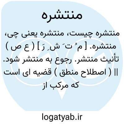 منتشره. [ م ُ ت َ ش ِ رَ ] ( ع ص ) تأنیث منتشر. رجوع به منتشر شود. || ( اصطلاح منطق ) قضیه ای است که مرکب از منتشره مطلقه و لادوام ذاتی باشد. که آن لادوام اشارت به قضیه مطلقه عامه باشد، مثال: «کل انسان متنفس وقتاً ما»؛ ای لا شی من الانسان بمتنفس بالفعل. ( از فرهنگ علوم عقلی سجادی ). رجوع به ترکیب بعد شود.